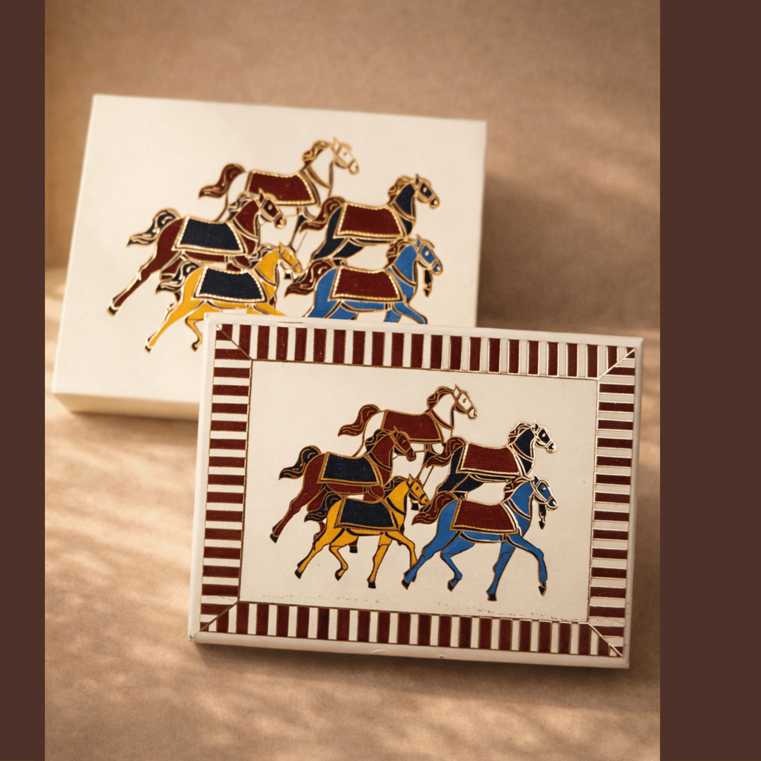 This elegant collection features traditional Indian folk-art illustrations of galloping horses. The...