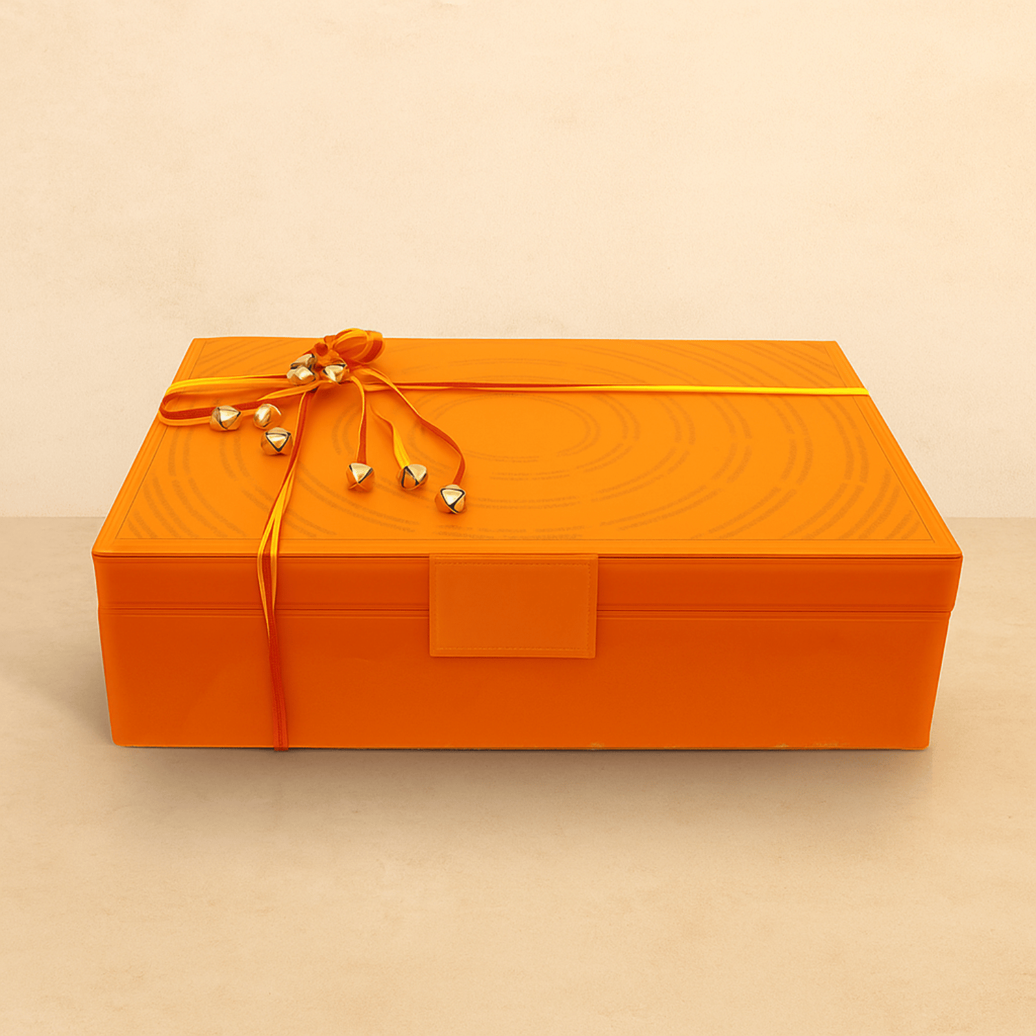 Elegant gift box adorned with golden bells, perfect for memorable return favors.