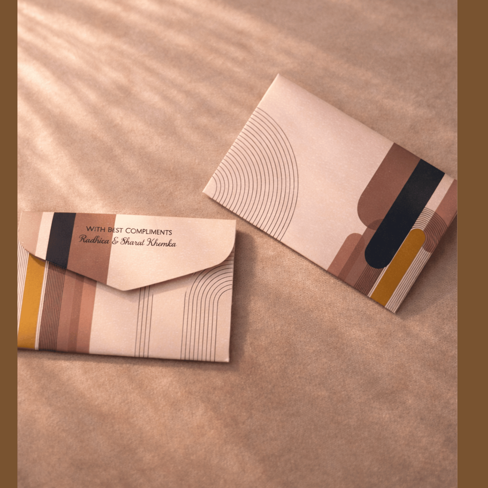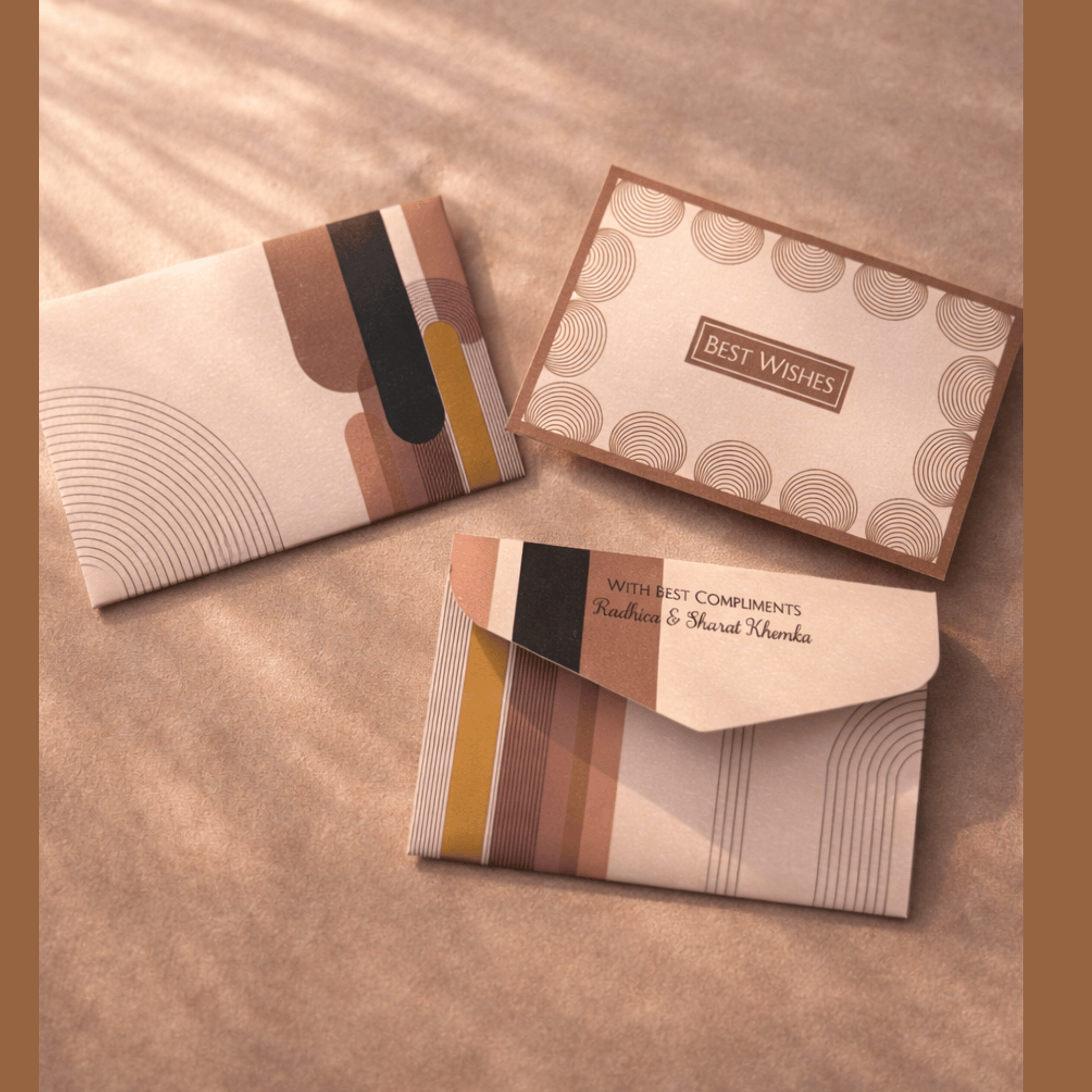 Chic geometric patterns with warm tones for refined, contemporary notes.
