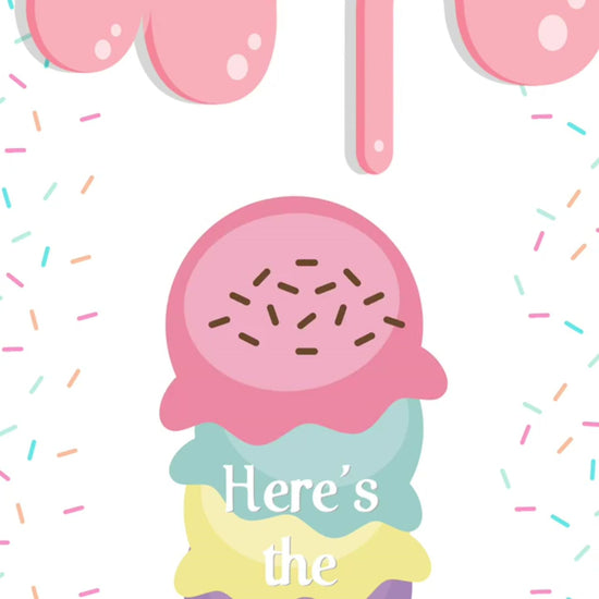This dreamy candy-themed invite announces a joyful voyage — a baby girl’s arrival wrapped in cupcakes, lollipops, and cotton candy skies. Surrounded by macarons, ice cream cones, and a garland of gumdrops, it captures the sweet magic of welcoming a little one into the world.