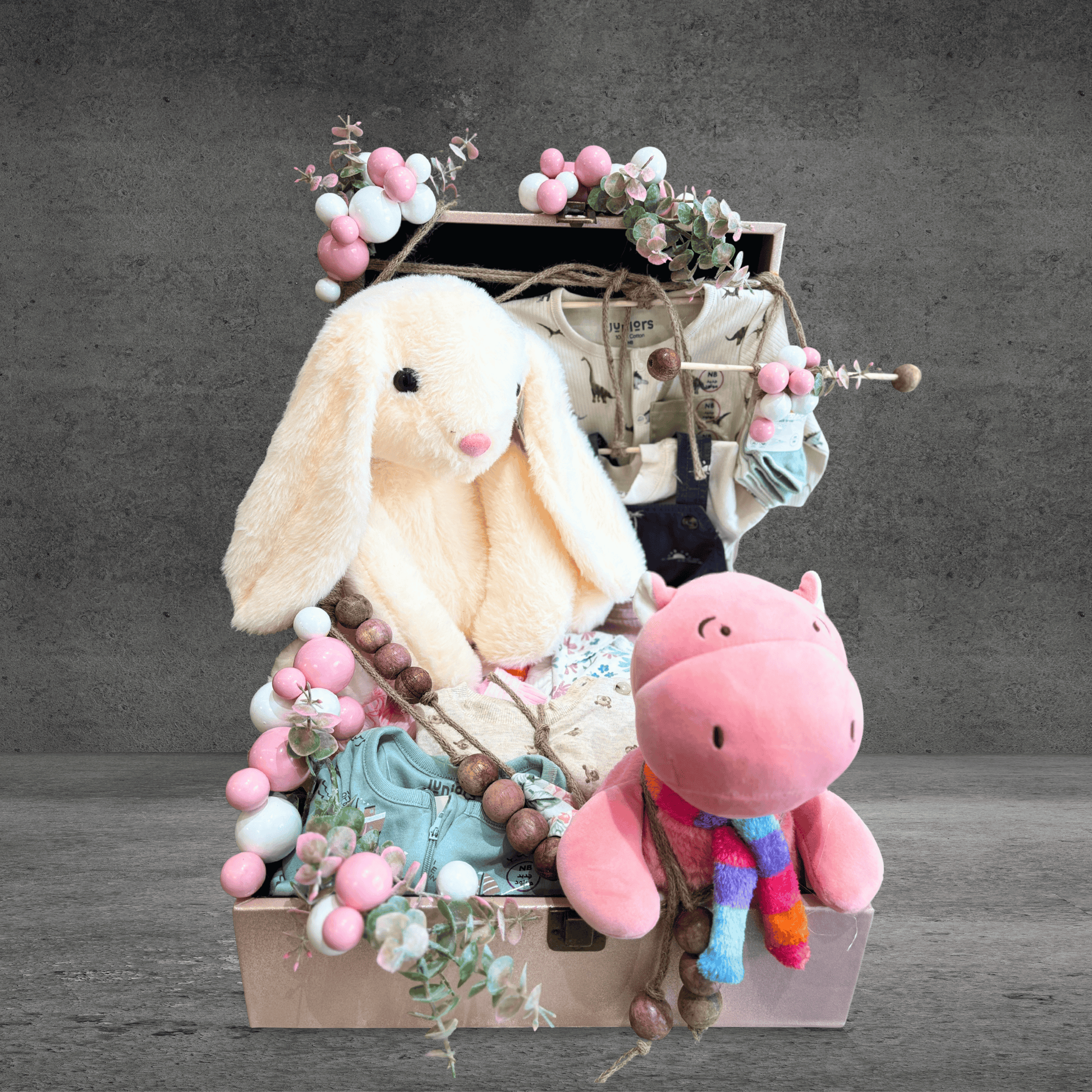 A heartwarming baby trousseau filled with cuddly plush toys, adorable outfits, and charming details — perfect for welcoming a little one with love and joy. A keepsake of sweet beginnings!
