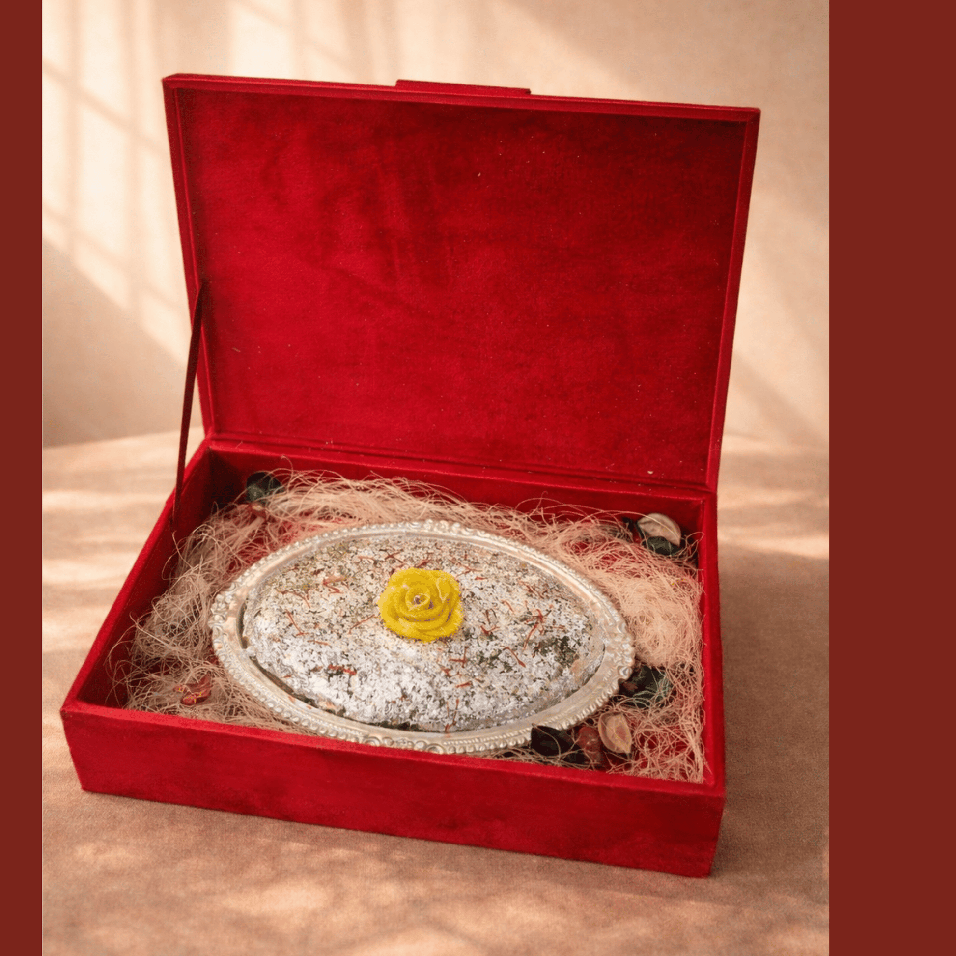 A luxurious velvet box adorned with floral elegance—crafted to hold memories as beautiful as your union.