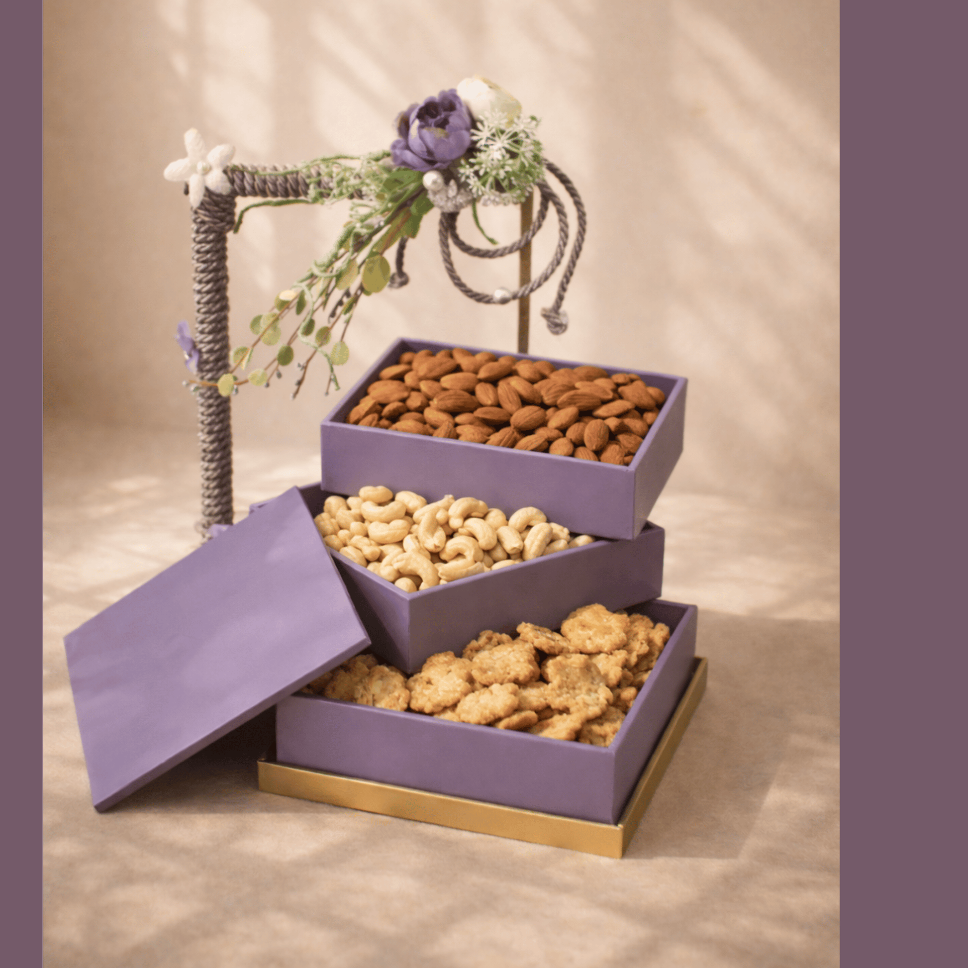 A graceful lavender keepsake adorned with soft florals and metallic accents, crafted to celebrate love in its most delicate form.