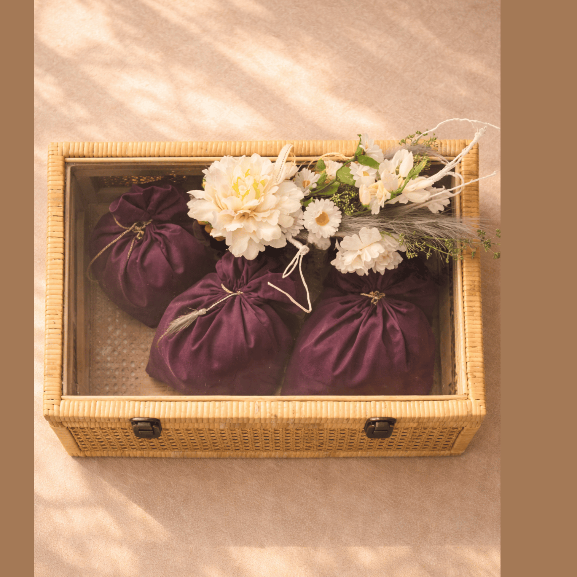 A handcrafted cane-webbed display trunk featuring a clear glass lid and antique metal latches. Its natural textures and floral accents make it an elegant choice for luxury gifting or artisanal home storage.